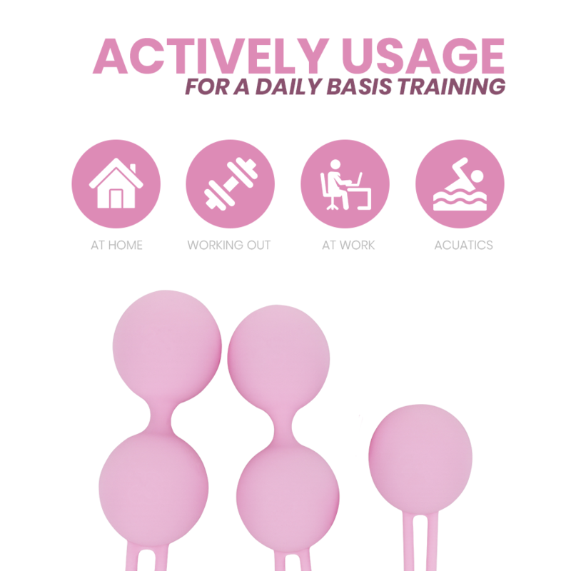 Saúde Pelve Intimíquica II ; Baseados na realização dos exercícios de Kegel, desenvolvidos pelo Dr. Arnold Kegel, são uma série de contrações e relaxamentos vaginais que fortalecem o músculo pubococcígeo (PC) e o grupo muscular do assoalho pélvico, aumentando gradativamente os pesos.